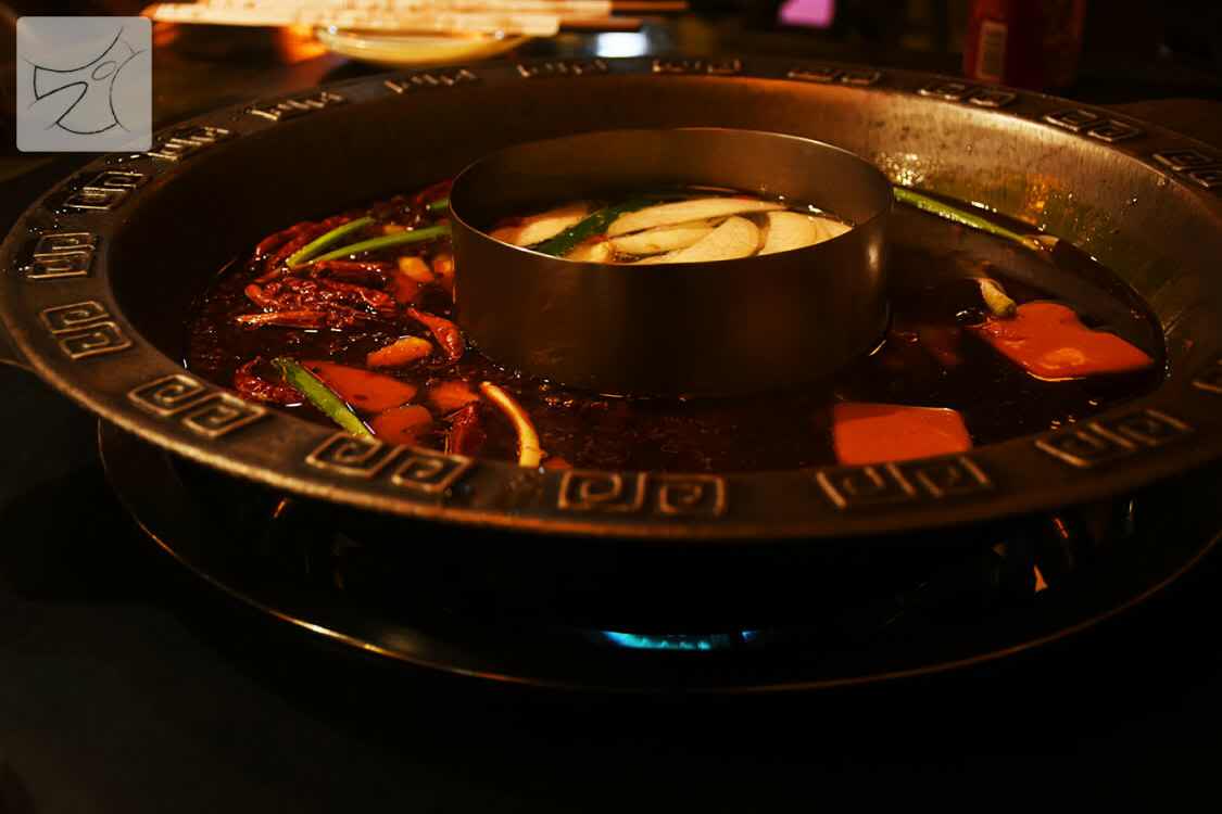 我们一行人等待着点好的菜,阿姨和蔼地送来饮料,锅底送来之时,你心中会燃起烈火,如火锅般的颜色,不止息。独在异乡的我们更被这暖暖的关心感动,空气暖心亦暖,一家有爱的店似乎更让人向往。因为非四川人,所以被建议选择微微辣的鸳鸯锅,各种菜品让我们大饱口福。荤菜素菜均衡搭配,让你拥有更完美的享受。