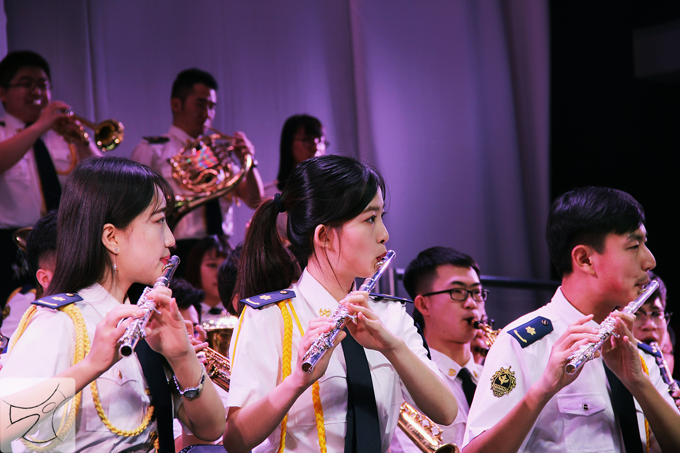 舞蹈《梦西湖》与合唱《呼伦贝尔大草原》向观众们展现了中华民族辽阔疆域上的不同的美,或柔情婉约,或豪放旷达。紧随其后的小品《子孙满堂》缅怀了中国的抗战岁月,抒发了对抗战士兵血战疆场的敬佩之情,将整场活动的气氛调到了巅峰状态。而舞蹈《灼灼芳华》与歌曲《红豆》遥相呼应,翩翩舞袖舞出了东电学子的青春姿态,嘹亮歌声唱出了东电学子的深沉真情。在陈晓光老师的指挥下,军乐团为观众们带来的交响曲优美动听,和谐向上,犹如大海的波涛起伏,极为壮观。至此,伴着主持人的新年致辞,新年晚会圆满结束。