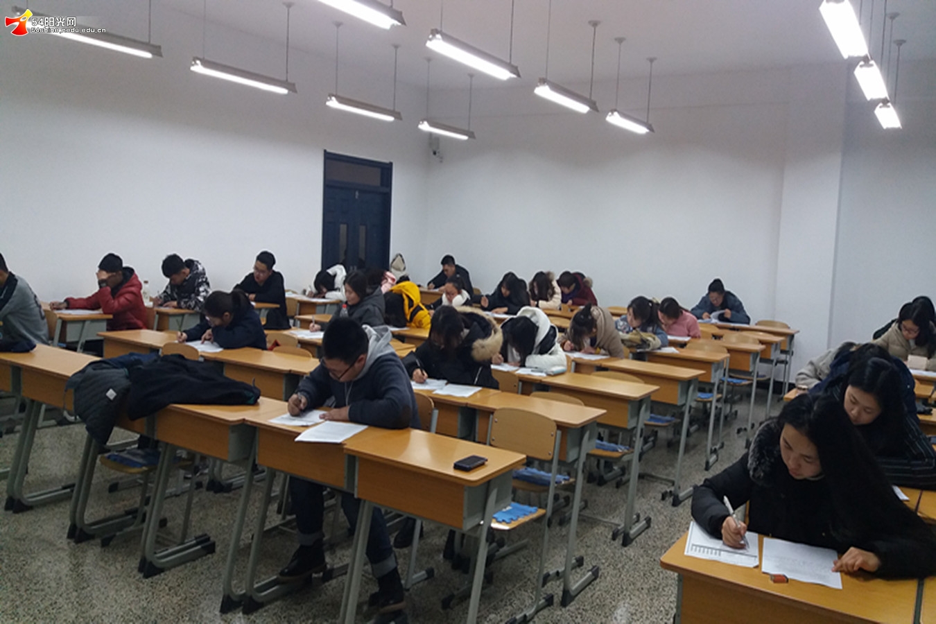 考试开始前,由监考人员强调本次期中考试的纪律及相关的注意事项,随后考试正式开始。首先进行的是高数考试,由任课老师出题,题目主要是前一阶段学习的重点内容。在考试过程中,同学们专注认真,考场相当安静,只能听见笔尖与试纸接触的沙沙声。此时此刻的同学们如同战场上的勇士,以笔为矛,以纸为盾,泼洒青春的热血将重重难题一一斩断,一展男儿之血色,巾帼之风采。高数考试结束后进行的是英语考试。考试方式是采用历年四级真题来模拟四级考试,其目的是为了使同学们能在后期的四级考试中从容应对,一举拿下。尽管此次考试的科目是令万千学子头痛万分的英语,但同学们仍然镇定自若,面带微笑将写作、听力、填词、阅读,翻译一一破解。伴随着铃声的敲响,考试结束后,同学们有条不紊的上交答卷,期中测试宣告圆满结束。