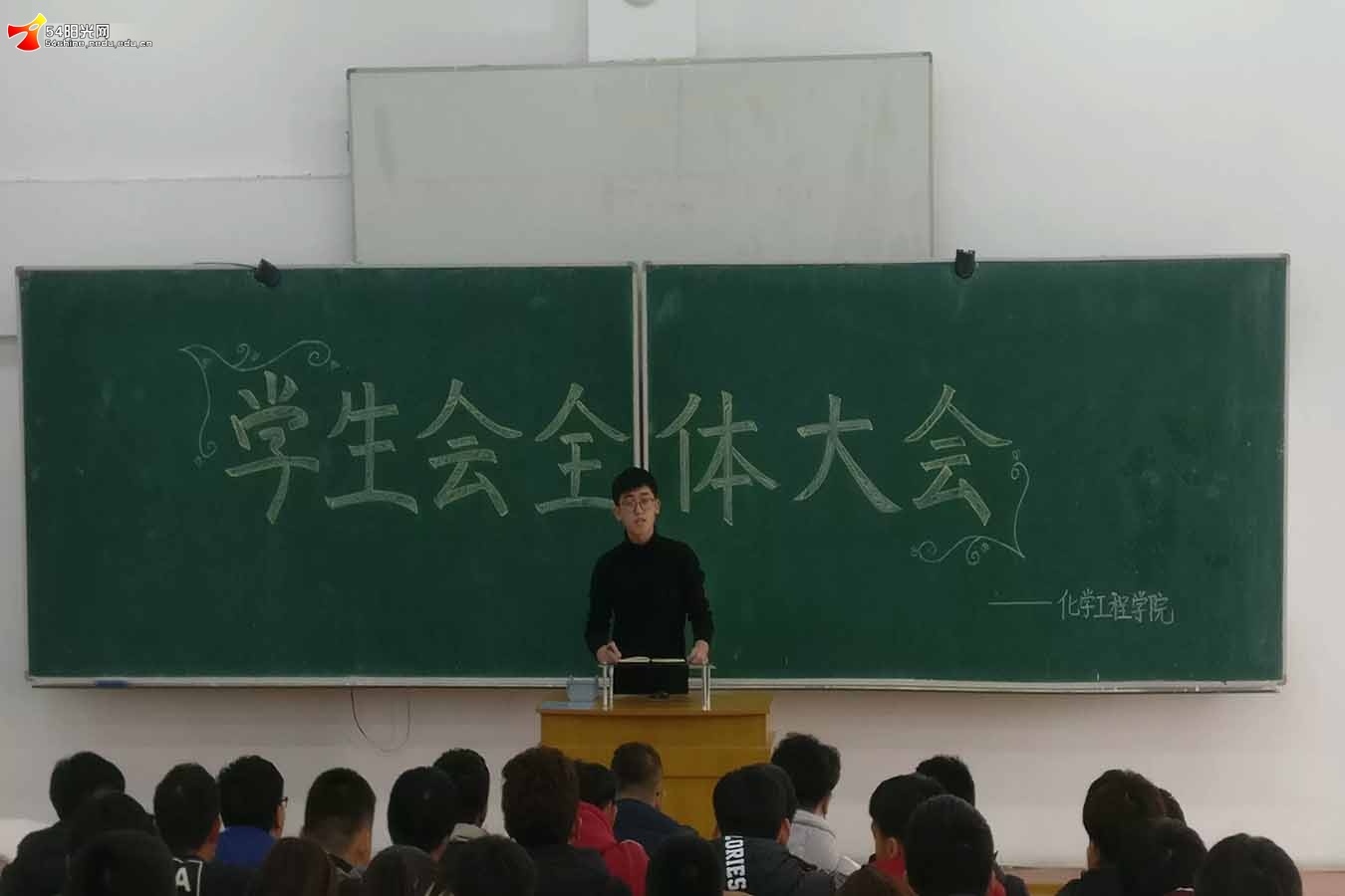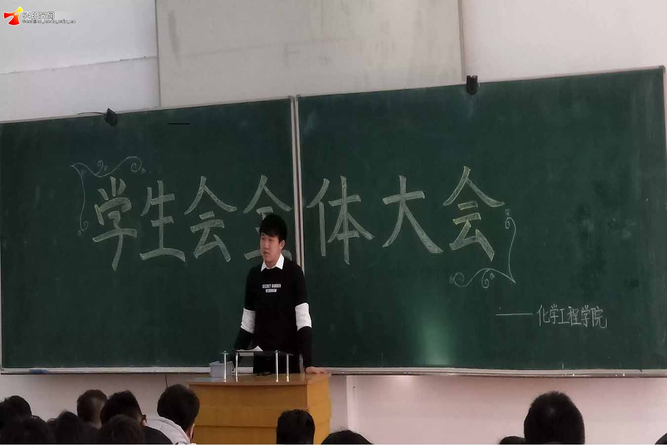 在会议正式开始前,由兰硕学姐点名,紧接着由秘书处的赵晓宣为主持人宣布大会正式开始。主持人为我们介绍了参加此次大会的干部,化学工程学院分团委学生会主席佟立志,化学工程学院分团委学生会副书记刘威,化学工程学院分团委学生会副主席谭钧元等人,同学们以热烈的掌声欢迎。接着进行大会第一项,由化学工程学院分团委学生会主席佟立志进行讲话。主席主要就以下三点做出重要讲话,第一,最近是传染病的高发期,我院已有很多同学感冒并长痘,希望大家注意保暖,做好预防工作。第二,学生会最重要的当然是学习,刚刚结束期中考试,几家欢喜几家愁,主席夸奖了成绩突出的几名同学,当然也希望成绩落后的同学能够后劲勃发。第三,就是学生会制度,既然大家加入到学生会这个大家庭,就能够遵守学生会的规章制度,历史上的五四运动,一二九运动都是学生带领的运动,学生的力量是不可小觑的,希望同学们能够反思。下面是化学工程学院分团委学生会副书记刘威进行讲话。在刚刚结束的十九大,我们都听了习总书记的讲话,刘威副书记讲到,他最近在读习近平的《青年岁月》,习近平之所以能从当初的小干部到现在的国家主席,最不可缺少的就是强烈的责任感和办实事,还有辩证思维法,尤其是作为干部,无论遇到什么事一定要有耐心,重中之重就是要肯读书,并希望大家在值班的时候能够多读书,也可以借回到寝室看。接着进行大会第二项,请各部门的代表对近期的工作情况进行总结并对以后的规划做详细介绍。