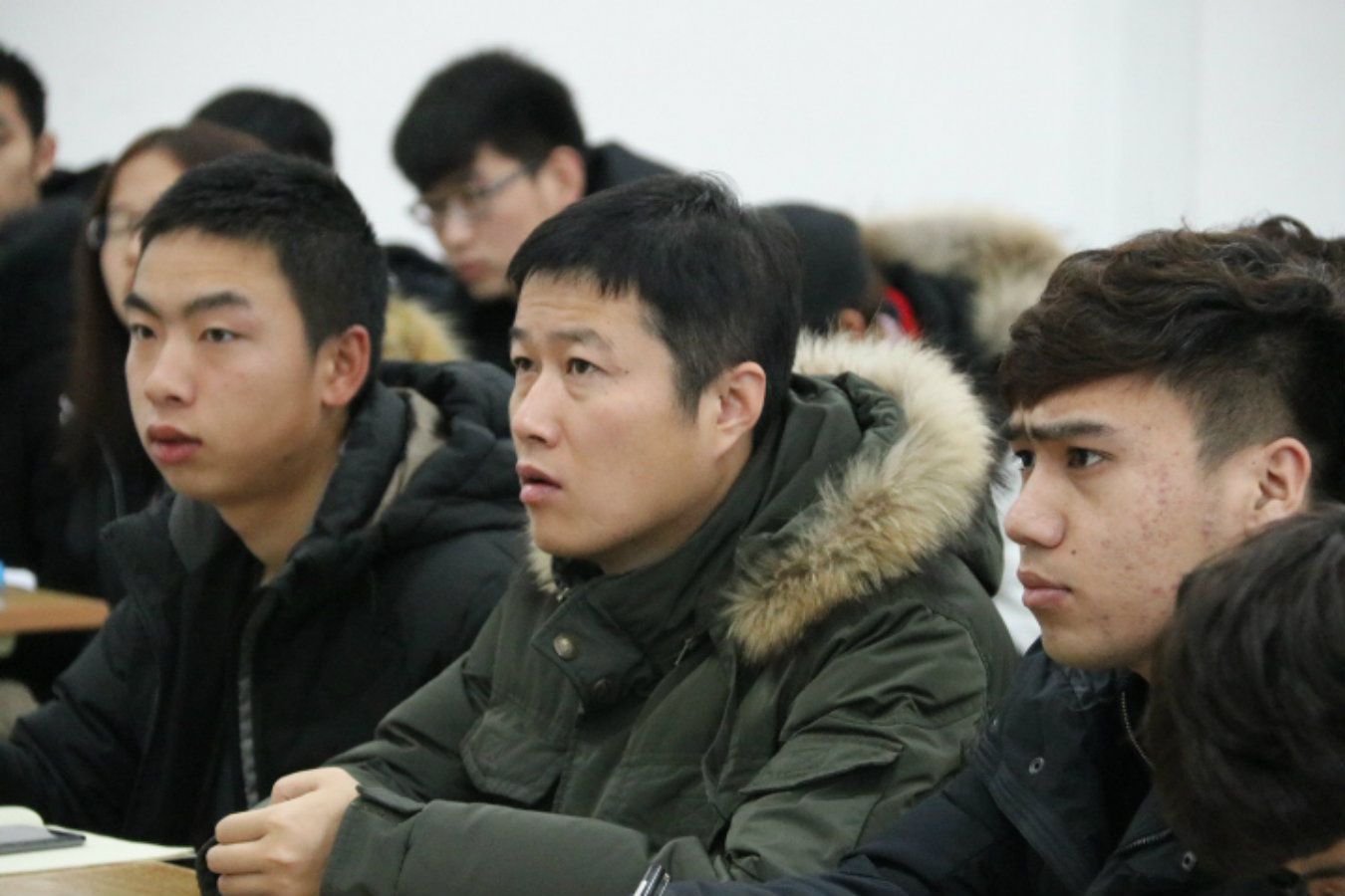 学生第一党支部书记简大为与同学们一起认真聆听