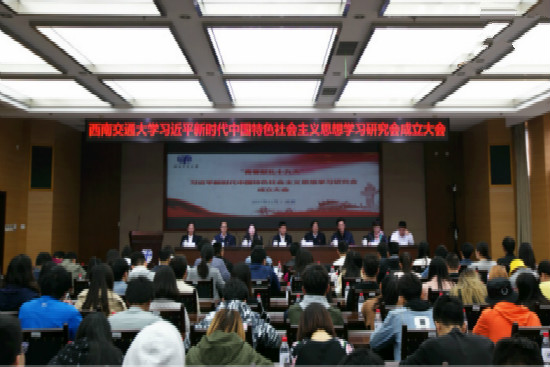 该社团由杨镇、杨淼、徐博宇、石红艳等2015级本科生发起,创始会员66人,包含本科生、硕士生、博士生。社团以“一个理念、两个特色、三个深入、四个渠道”为建设思路,以集中与分类相结合、理论学习与课题研究相结合的方式,依据社团成员兴趣划分为习近平新时代中国特色社会主义研习组、习近平社会主义核心价值观研习组、习近平青年思想研习组、习近平传统文化观研习组、习近平中国梦论述研习组、习近平从严治党思想研习组等六个小组,组织开展主题研究、学习宣讲、读书分享、周末调研、暑期“三下乡”等活动。为了推动社团活动开展,学校帮助社团聘请了四川省马克思主义哲学史研究会副会长、西南交通大学首届“最受学生欢迎的十大教师”、马克思主义学院党委书记刘占祥教授担任指导老师,配备了马克思主义学院、党委宣传部、校团委等3个单位为指导单位。会上,张荣为协会指导单位颁发了证书,沈火明为指导老师颁发了聘书,杨镇同学作为首任会长,代表协会作了协会发展规划报告,与会领导们给协会各小组同学代表赠送了习近平青年工作思想论述摘编等相关书籍。