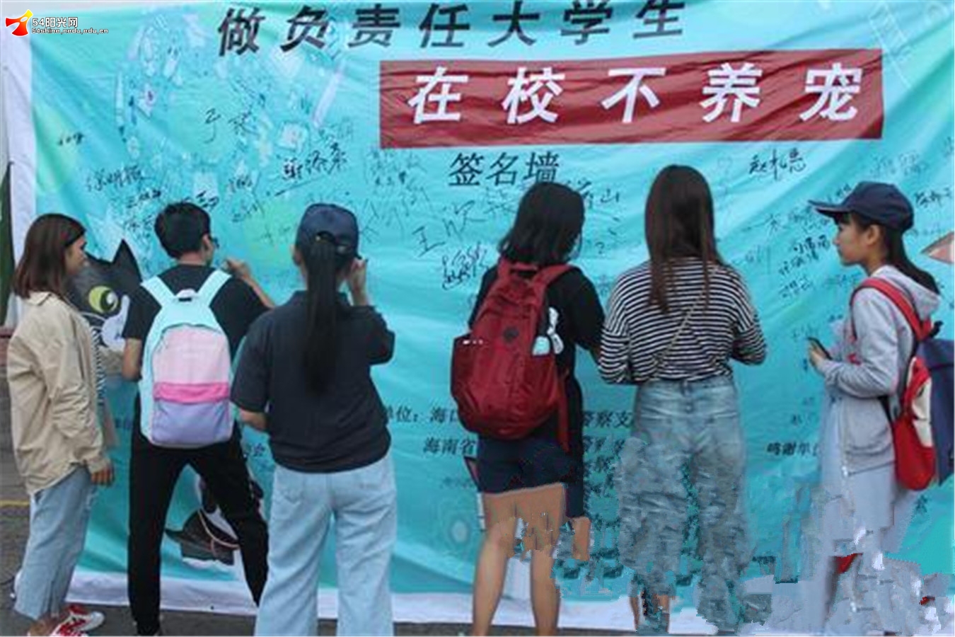“我承诺,在校不养宠!”11月10日,海南师范大学桂林洋校区一些师生在志愿者的带领下庄严承诺,这是中国动物保护公益联盟策划的“在校不养宠”公益宣传活动海南高校首站的现场。