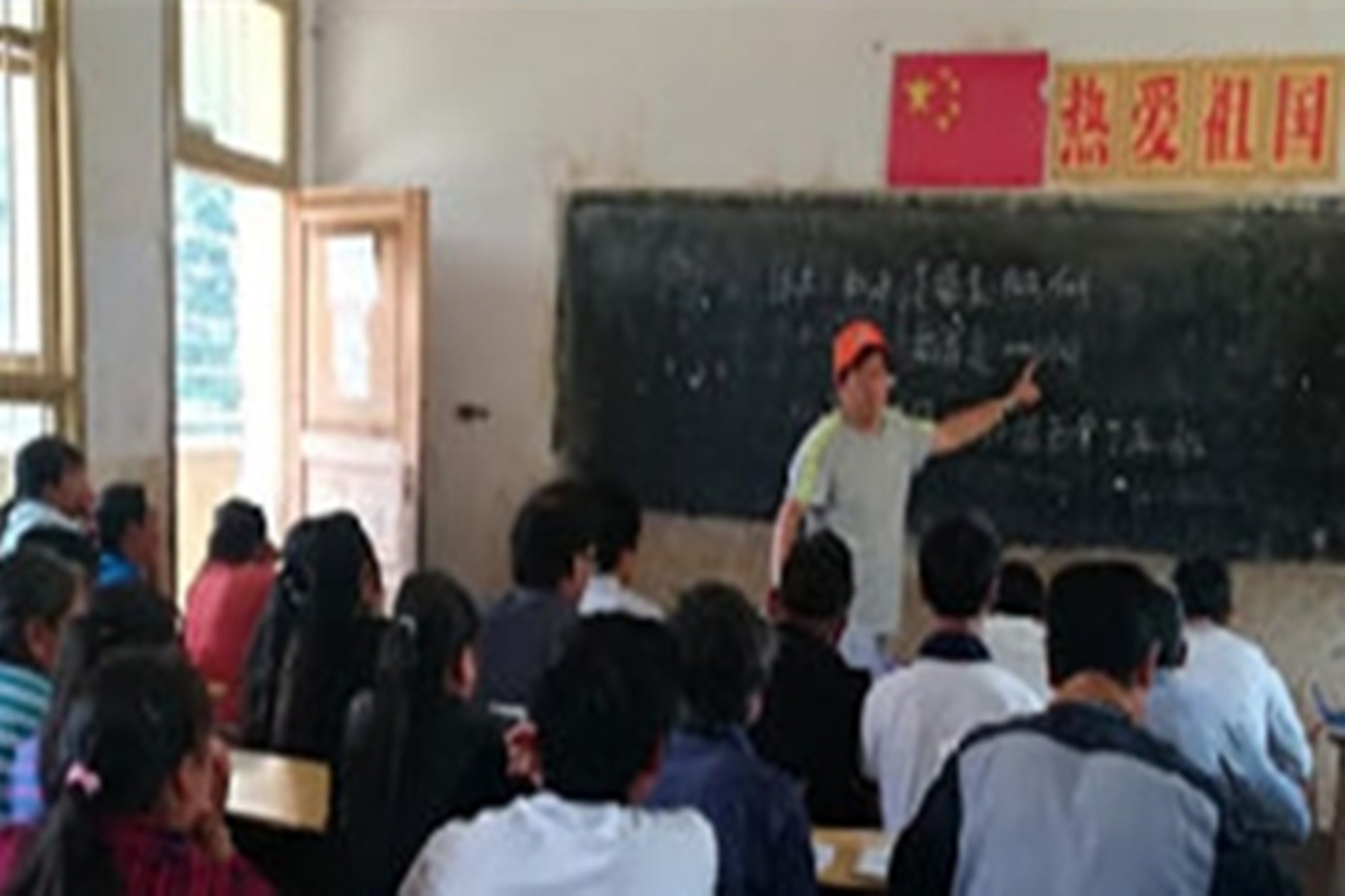 指导教师张世攀正在给畜禽养殖户培训在养殖过程中预防和治疗疾病的科学技术知识