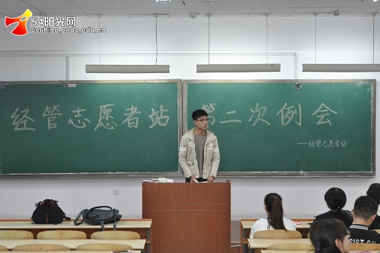 首先,站长谭丁铖对上次清明文明祭祀的活动进行总结和反馈,提出了相关建议和改善环节。并对上次活动进行详细剖析,对进步之处提出了表扬与鼓励,对不足之处提出了建议与期望。现场,干事们认真倾听,专心反思。随之,副站长周雨讲话,副站长周雨发表了对上次活动的看法,对干事们用心的付出表示感谢,并详细分配了下次地球日活动的任务。地球日的主题为环保。当今世界,对环保的重视愈来愈强,地球母亲无私为我们提供优质的自然环境,然而如今环境问题愈发突出。因此,我院青年志愿者分站以环保为主题,为我校环境的改善献出绵薄之力,希望借此倡导环保意识,共建美丽校园。为此,干事们积极讨论,出谋献策,尽心为此次活动做力所能及之事,现场气氛活跃。最后,讨论结束,各自肩负责任。至此,我院青年志愿者分站第二次全体例会圆满结束。