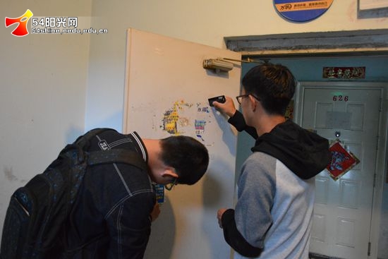 尽管当天下雨,气温较为寒冷,但志愿者们热情高涨,提前来到14舍一楼集合。清理开始之前,志愿者站副站长林杨向大家的到来表示感激并进行鼓励,同时结合各楼每层的实际情况,对志愿者们进行编组和分工。随后,本次清理活动正式开始,志愿者们拿着清理工具,迅速奔向自己的工作区域。小广告的数量较多且贴合紧密,清理起来十分费力。尽管工作难度很大,但志愿者们迎难而上,积极地投入清理工作。他们拿着小铲子,将小广告一点点地铲除,同时志愿者们也十分注意动作的轻柔,减少对墙壁的伤害。有些小广告篇幅较大,志愿者们几人合作,共同清理。不多时,无论是门上的、墙上的还是消防器材上的小广告都被铲除一空。清理完毕后,同学们没有立刻离开,而是用扫帚将小广告纸屑扫起来并倒入垃圾桶内,体现了能动志愿者们杰出的素质。