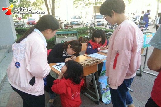 活动之前,我们的志愿者便联系好义卖供应商,做好了前期准备。义卖当天,我们的志愿者早早地来到活动地点。为了增加活动的乐趣,在义卖“东电定制版钥匙环”的同时,我们的志愿者们别出心裁的想出了一个游戏—“眼高手低”,大大活跃了现场的气氛。人间自有真情在,一位同学在了解我们的活动后,慷慨的捐出了五十元,并且没有留下任何信息便离开。不仅仅本校学生积极奉献自己的爱心,小姑娘也带着自己的妈妈积极的参与到我们的活动中,在东电校园埋下了爱的种子。