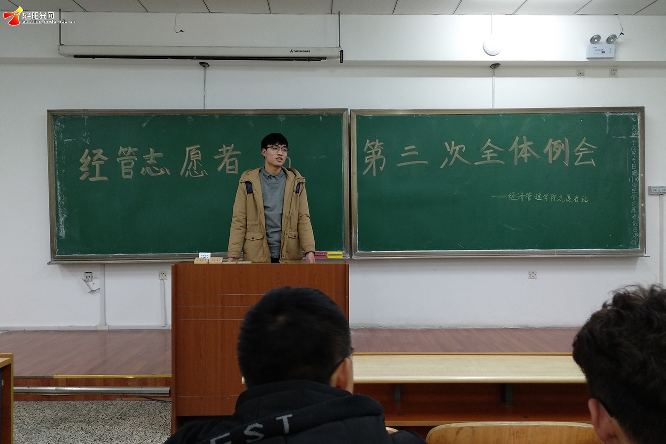 会议开始,由志愿者站站长谭丁铖上台讲话。首先,站长谭丁铖总结了于12月2日、3日在三教长廊参加的美食节活动。美食节当天,志愿者站租下一个摊位,为支教虎牛沟小学做物资准备。摊位上主要售卖零食、玩具,赚得的钱用于给孩子们买礼物,同时还有各位有爱心的同学为虎牛沟小学的孩子们写信。正是美食节的收获颇丰,才为12月6日支教虎牛沟小学活动打下良好的基础。接着,站长谭丁铖又布置了支教虎牛沟小学的任务,并提出指示。志愿者站部分成员将于12月6日带着美食节筹措的物资前往虎牛沟小学。其中共分为两个教室,每个教室都有主持人、干事们装扮成的动物,会组织小朋友们上手工课、玩游戏……将欢乐与爱心带给每一个虎牛沟的小朋友,让他们在冬日里感受温暖。站长谭丁铖发言过后,由每个部长分别给部门干事开小型会议,主要交代虎牛沟小学活动的人员分工、物资准备、任务分配以及注意事项。
