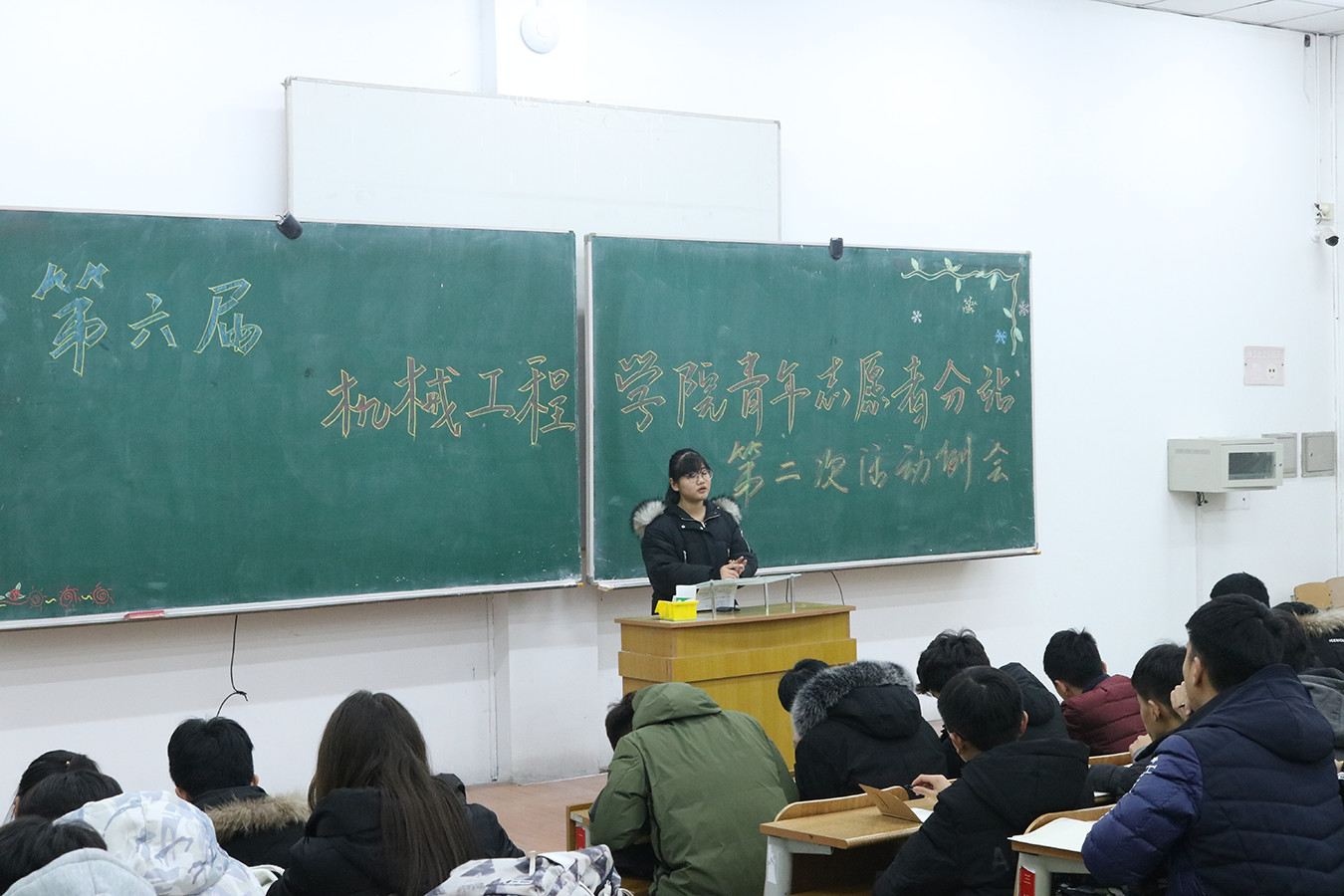 会议伊始,由站长高静发表讲话,主要强调三点问题。首先对各部门的培训任务做了简单的说明和总结,让干事们了解自己的任务,明白自己在志愿者站中需要做些什么、掌握什么技能,从而帮助部长分担压力,使志愿者站的工作能够更加快速高效地进行。其次,以站内近期出现的问题为例,督促干事们要端正态度,认识到作为组织的一员所应承担的责任,不可随心所欲,要始终把团队意识放在首位,有问题要及时和部长以及主席团沟通,做好交流工作。最后,既对即将进行的“红糖姜水”活动中各部门的任务作出分配,把活动中的各项细节落实到部门负责,保证活动可以不出差错,顺利完成。又让干事们理解了这一活动的深刻意义,提高了他们的积极性。接下来,副站长刘辉上台发言,补充说明了活动中的几项细节问题。又对干事们未来的学习生活提出期望,希望他们可以在参与志愿活动的同时收获快乐与成长。在大家热烈的掌声中,本次大会圆满结束。