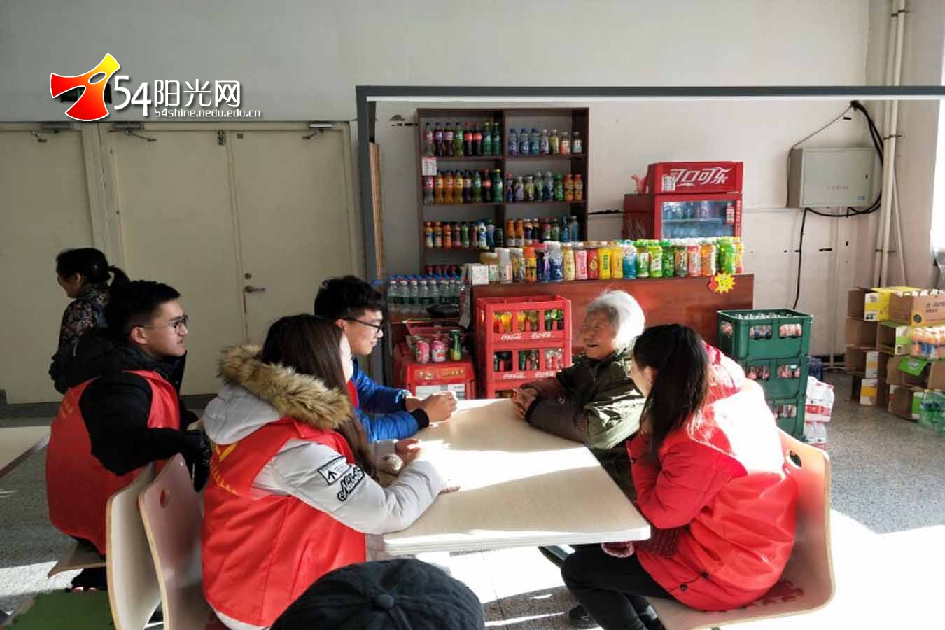 几天前,志愿者们就号召同学把自己寝室内的瓶子和纸箱都收集起来并折好,等到探望时送给奶奶,并同我校誉兴食堂负责人沟通好,给予奶奶一些帮助。最重要的事情是跟奶奶约定好时间和地点,方便同学们把东西都带去给奶奶。在约定好的日子里,志愿者们上午到老校区的各个商家收集纸箱、瓶子等有价值的废品,并整理好。同时向商家们讲述了奶奶的难处,希望他们以后也能多多帮助奶奶。等奶奶到达老校区后我们接她到二食堂,和奶奶一起吃了午饭。在惬意的午后时光里,我们听奶奶诉说她的故事,偶尔也会提起我们的趣事,在不知不觉中,消除了陌生感,气氛慢慢融洽而又和睦。天色渐晚,奶奶还要回去照顾家人准备离开了,我们为奶奶换上了之前备好的新棉衣,希望她能度过一个温暖的冬天。最后我们和奶奶一起将誉兴食堂准备好的大米,面粉,以及我们收集的纸箱、瓶子等物品用奶奶的三轮车送到了奶奶家里,然后将废品送到附近的废品收购站直接帮奶奶处理好了,我们的志愿者们才离开。
