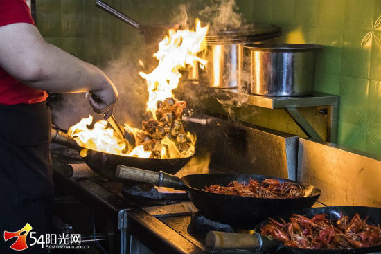 小编一行人到达店内的时候正是中午饭点,店内食客络绎不绝,每个人的眼神中都透着对美食的贪婪。那种眼神就仿佛是响应着美食的召唤,被呼唤着坐在餐桌旁对着那一锅锅小龙虾垂涎三尺,继而大快朵颐。偷偷地到后厨瞅了瞅,发现师傅们都在认真的做菜,神情肃穆。厨台上摆放着各式各样的调味料,小龙虾们在师傅的锅中不断烹炒,真的是色香味俱全,令人垂涎欲滴。