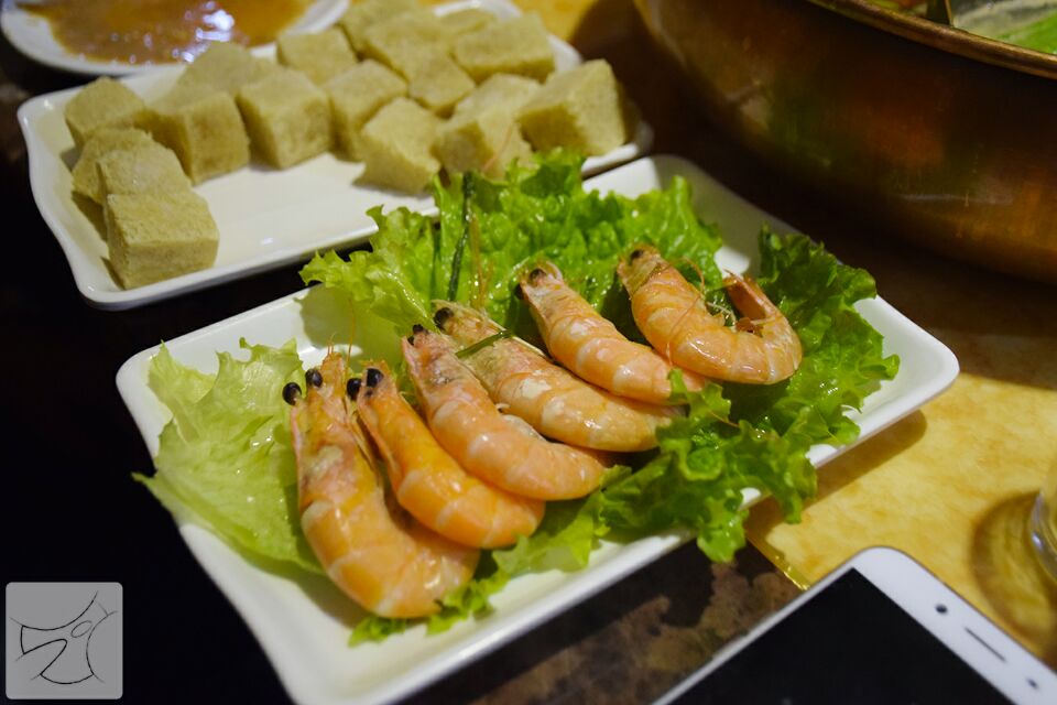 祖传自助蘸料,汤底纯天然,海鲜底料绝无添加剂;肉片厚,有嚼劲;大虾鲜润,好吃!