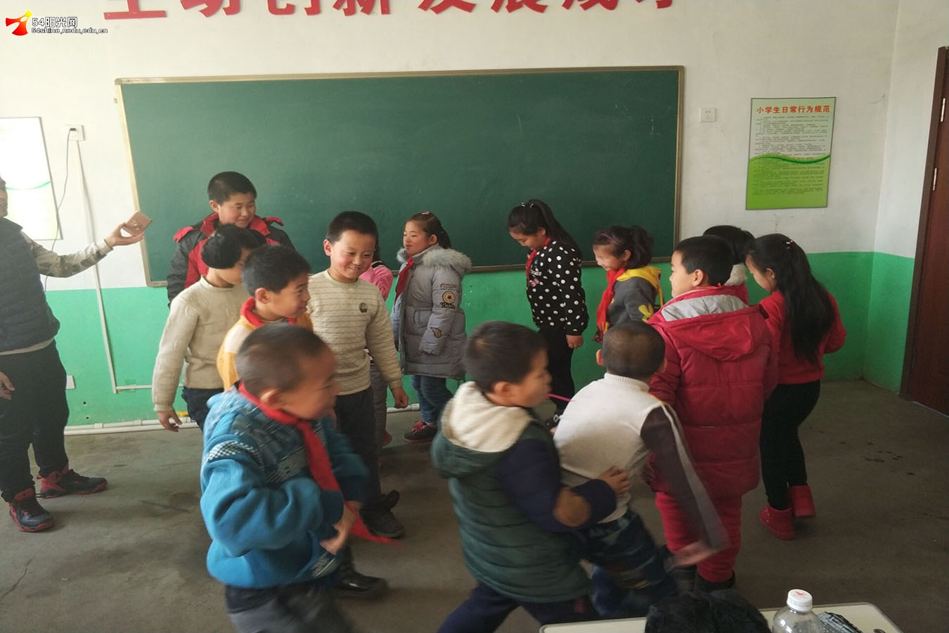 本次活动共分两个环节。在第一个环节上,新立小学的迟校长代表该校进行了讲话,对助学人的到来表示了感谢,该校的孩子们用热烈的掌声对助学人表示了欢迎。看到孩子们脸上露出的纯真笑容,令助学人感到了一丝欣慰。随后,助学人与孩子们在教学楼前进行了合影留念。 第二个环节,助学人针对各年级的不同分成了三队,各自带回教室进行支教活动。在教室中,助学人与孩子们开展了各类有趣的活动.一首首简单的歌曲,引起了孩子们的共鸣;一只只小小的棒棒糖,令孩子们万分愉悦。你画我猜,助学人和孩子们大展身手;女皇圈,齐眉棍等小游戏,教会了孩子们团结协作的重要性。助学人用自己的青春热血去感染孩子们,助学人的一举一动都阐述着对孩子们的关怀。游戏环节过后,助学人向孩子们发放了手套,耳包等过冬装备,令这个冬天不在寒冷。孩子们整齐的朗读声,动听的歌声,积极踊跃的发言,让我们的付出,让所有东电爱心学子的贡献,都变得那么有价值。孩子们团结一致,乐观积极向上的精神,让我们不由得为他们鼓掌。